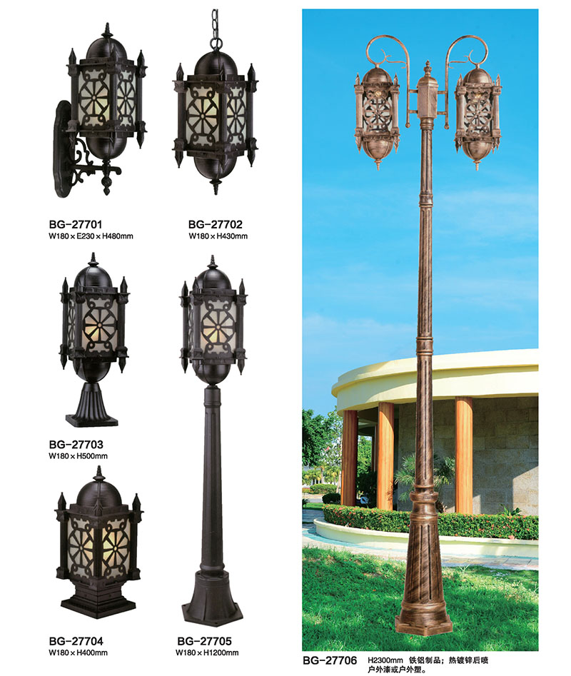 * 庭院灯可根据照明需求自由选择:单头庭院灯、双头庭院灯;