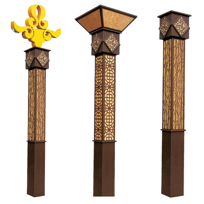 91抖阴成人版柱灯体采用优质镀锌钢材、不锈钢或铝材等材质,牢固耐用;灯体采用大型激光切割、折弯、焊接等工艺定制成型,再通过精细打磨处理使灯体外观光洁美观;灯体表面颜色采用静电喷涂粉末再通过高温炉烘烤固化,颜色不褪色不掉漆;新中式镂空91抖阴成人版柱灯罩可选用PMMA亚克力灯罩、PC灯罩或仿云石灯罩;内配优质高亮T5灯管、灯条、护栏管等条形光源,亮度高寿命长;灯柱高度常规有:2.5米、3米、3.5米、4米、5米等等;